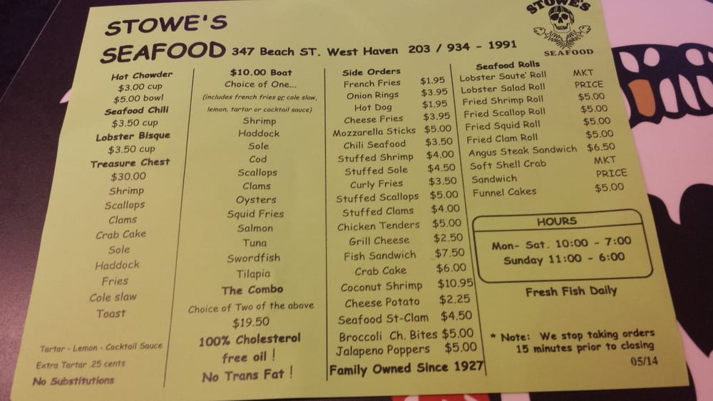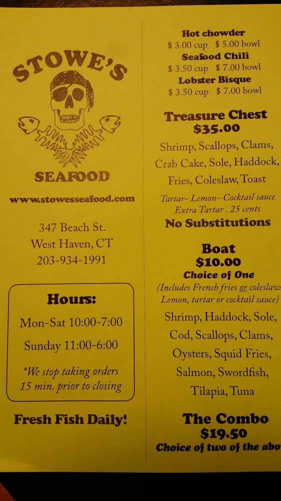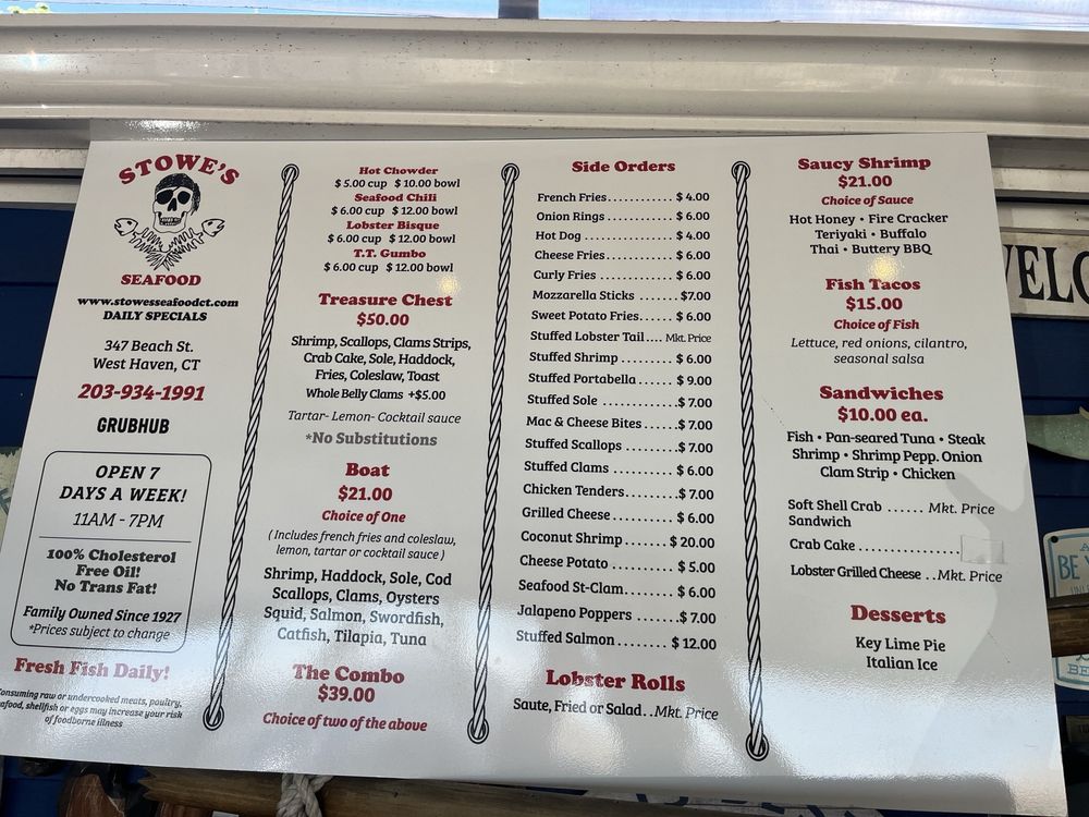 Stowe's Seafood, located in West Haven, CT, is a hidden gem for seafood lovers. This divey, casual spot offers a wide range of delicious seafood options from clam chowder to lobster rolls. Their Treasure Chest platter is a must-try, featuring a variety of seafood including shrimp, scallops, crab cake, sole, haddock, and clams. Customers rave about the freshness and quality of the dishes, with favorites like the Lobster Grilled Cheese and Lobster Saute Roll standing out. The outdoor seating with a view of the ocean adds to the charm of this place. While the prices are reasonable and the portions generous, be prepared to pay in cash as it is the only accepted form of payment. Overall, Stowe's Seafood offers a unique dining experience with tasty seafood dishes that will leave you wanting more.