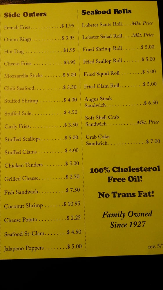 Choice of one type of seafood including french fries, coleslaw and lemon with your choice of tarter or cocktail sauce.